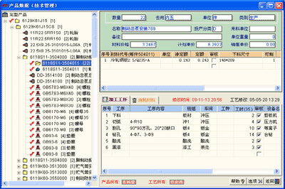 按零、部件所属关系显示产品的层次结构,实现产品明细表、工艺卡片、下料卡片等的编制与管理。结构清晰,操作灵活,功能全面。