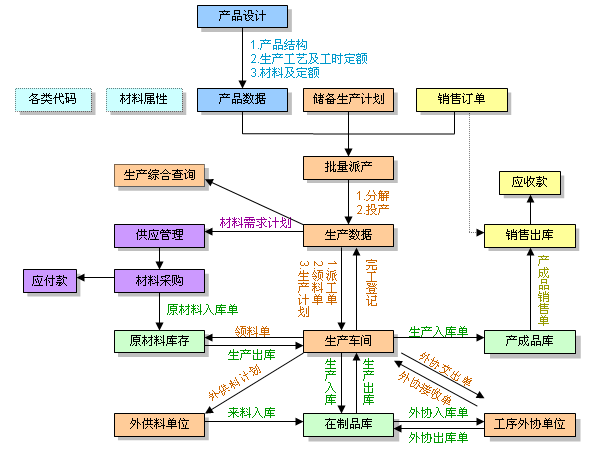 系统由技术文件管理、材料与工时定额管理、生产管理、仓储管理、供应与销售管理、财务成本核算、综合统计查询等功能模块构成。主要内容简介如下: